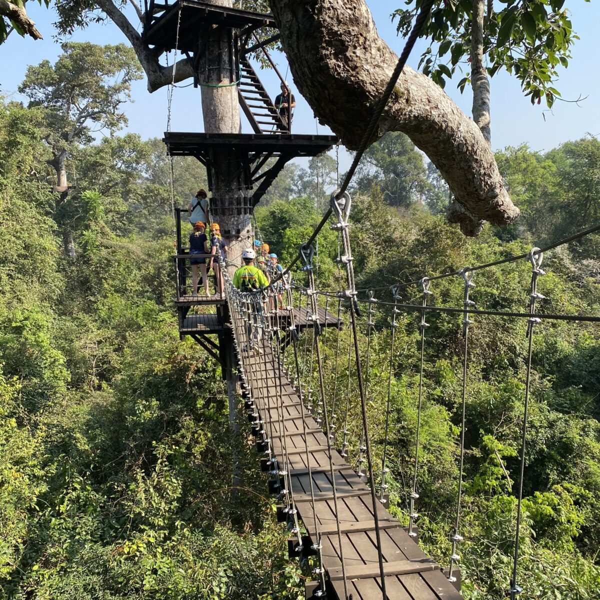 Ein echtes Abenteuer – gerade auch für Familien – ist die Angkor Zipline. Mitten im Dschungel klettert man hier auf Bäume, saust von Plattform zu Plattform, läuft über Hängebrücken und erlebt den Dschungel mal aus einer ganz anderen Perspektive. Und mit ein bisschen Glück sieht man auch die hier lebende Gibbon-Familie. Ein perfekter Ausgleich zu den Tempeln und ein tolles Erlebnis für Kinder.